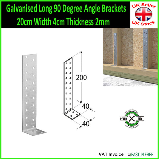 Galvanised Long 90 Degree Angle Brackets 20, 30 or 40cm Width 4cm Thickness 2mm