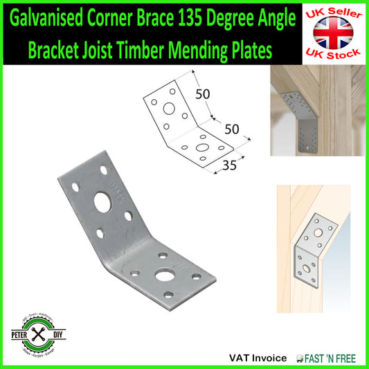Galvanised Corner Brace 135 Degree Angle Bracket Joist Timber Mending Plates