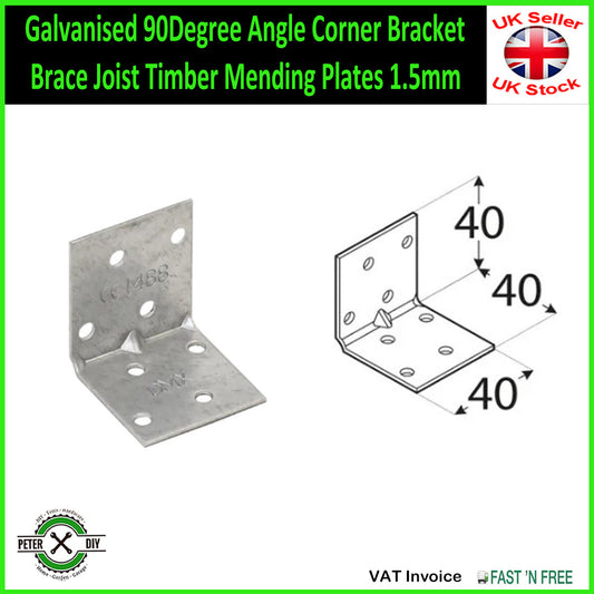 Galvanised 90Degree Angle Corner Bracket Brace Joist Timber Mending Plates 1.5mm