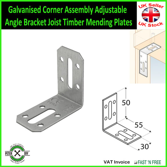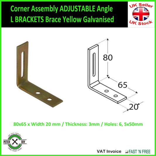 Corner Assembly ADJUSTABLE Angle L BRACKETS Brace YellowSilver Galvanised 4 Sizes
