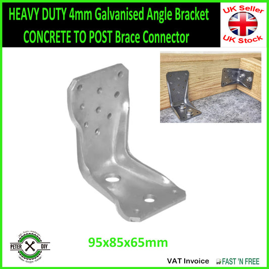 HEAVY DUTY 4mm Galvanised Angle Bracket CONCRETE TO POST Brace Connector