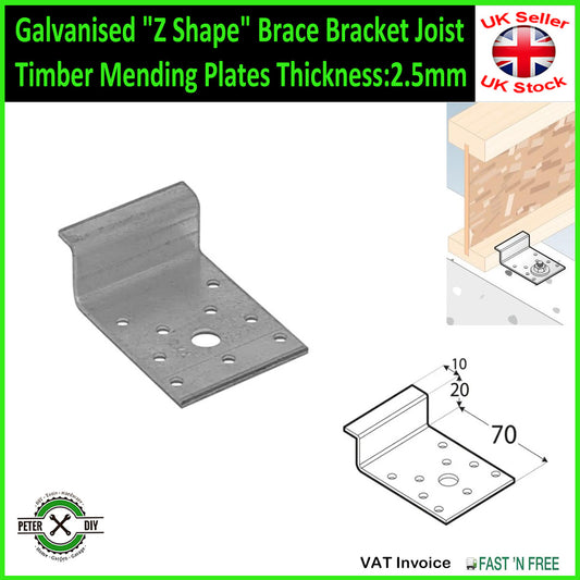 Galvanised "Z Shape" Brace Bracket Joist Timber Mending Plates Thickness:2.5mm