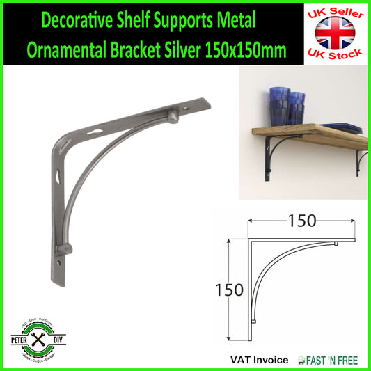 Decorative Shelf Supports Metal Ornamental Bracket Silver 2 Sizes