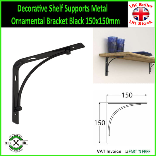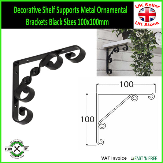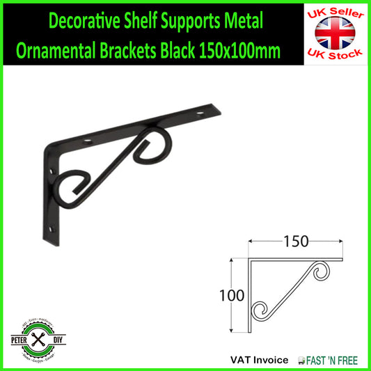 Decorative Shelf Supports Metal Ornamental Brackets Black 3 Sizes 100-200mm