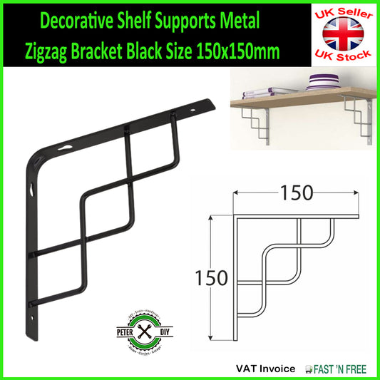 Decorative Shelf Supports Metal Zigzag Bracket Black 2 Sizes