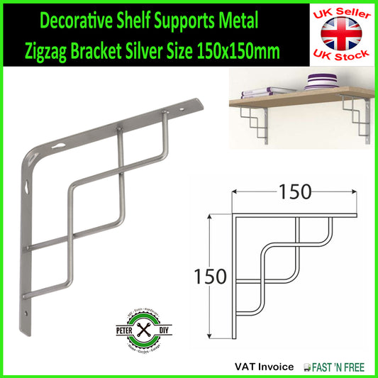 Decorative Shelf Supports Metal Zigzag Bracket Silver 2 Sizes