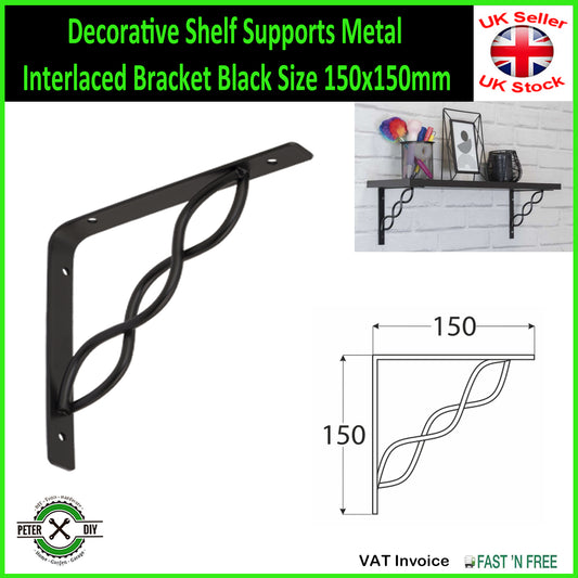 Decorative Shelf Supports Metal Interlaced Bracket Black 2 Sizes