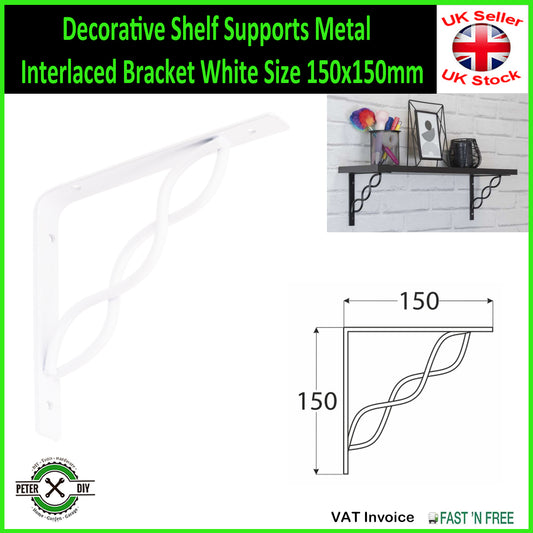 Decorative Shelf Supports Metal Interlaced Bracket White 2 Sizes