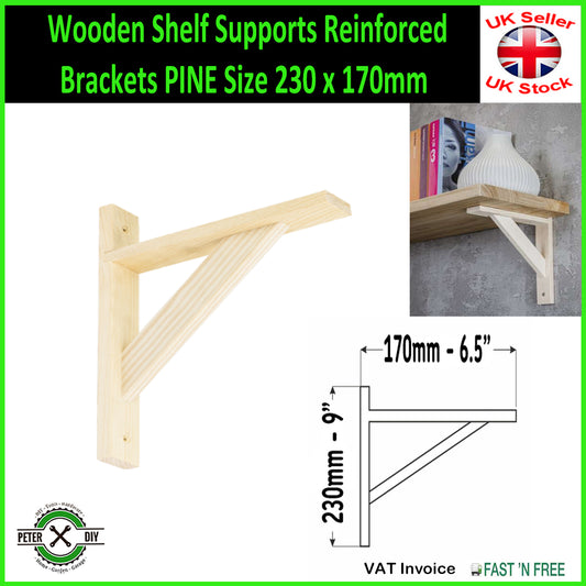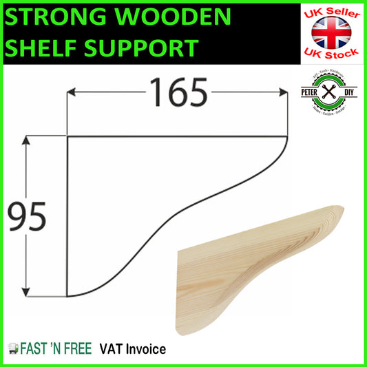 WOODEN Shelf Supports BRACKETS 20mm Pine 2 Sizes 165x95mm or 215x120mm