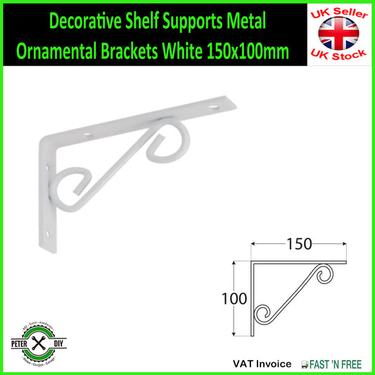 Decorative Shelf Supports Metal Ornamental Brackets White 3 Sizes 100-200mm