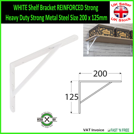 WHITE Shelf Bracket REINFORCED Strong Heavy Duty Strong Metal Steel 3 Sizes