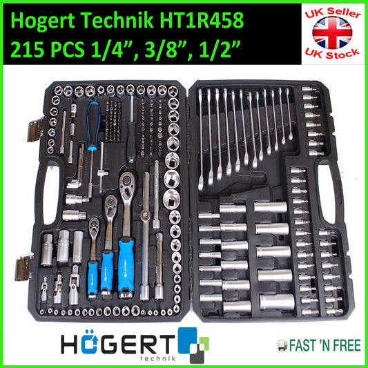 SOCKET SET 215 pcs 1/4" 3/8" 1/2" Ratchet Tools Toolbox Hoegert Technik HT1R458