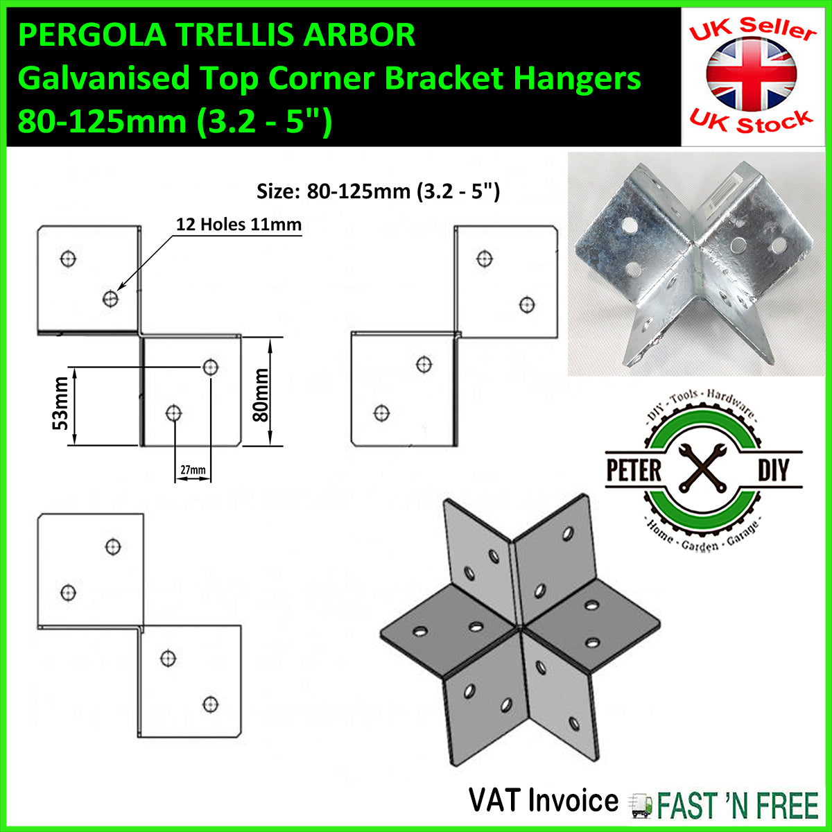 PERGOLA TRELLIS ARBOR Galvanised Joist Hanger Support Top Corner Bracket Hangers